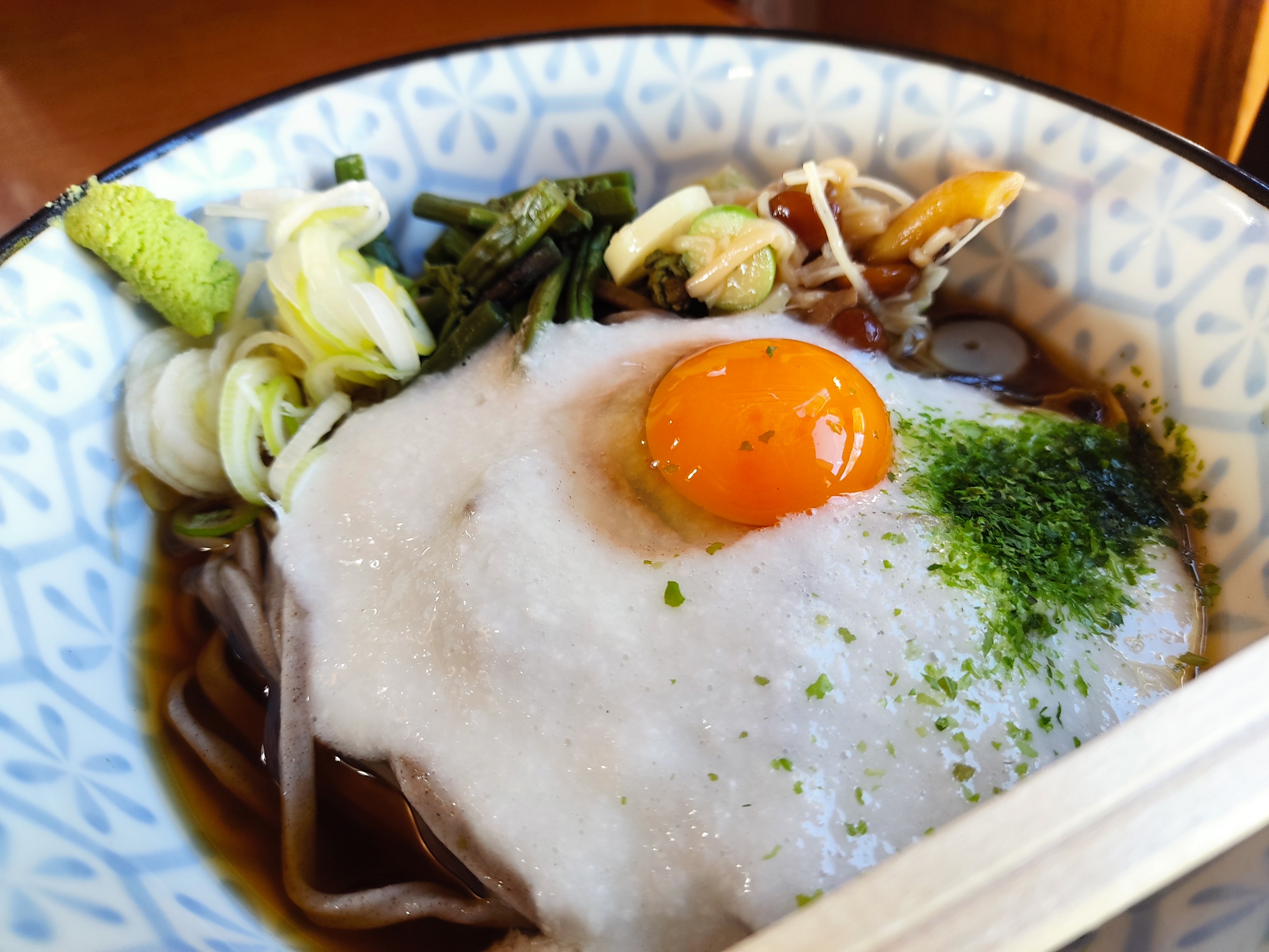 暖かい…というか暑いくらいの日だったので、冷たい山菜とろろそば(1200円)