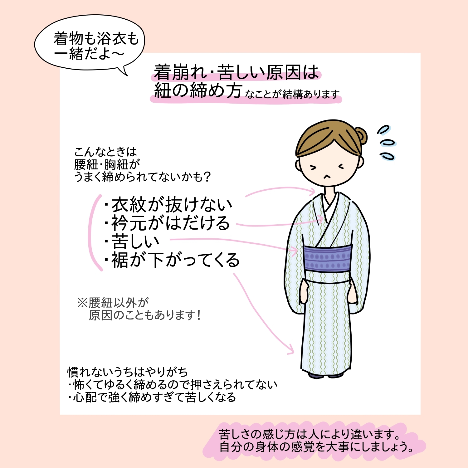 だから「難しい」「きれいに着れない」「着崩れる」「苦しい」となるんです。