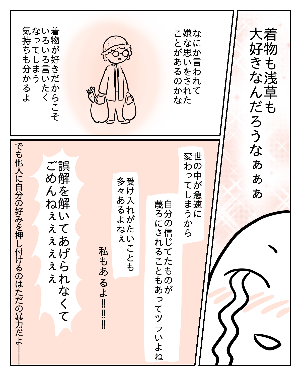 「浅草の着物は」と仰っていたので、観光用のレンタルの着物にも言いたい事があったのかもしれません。