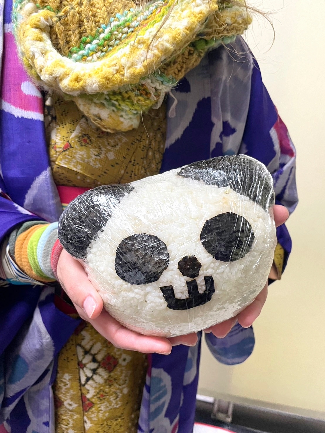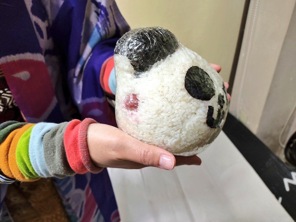 巨大パンダおにぎりを買ってきたお客様も。