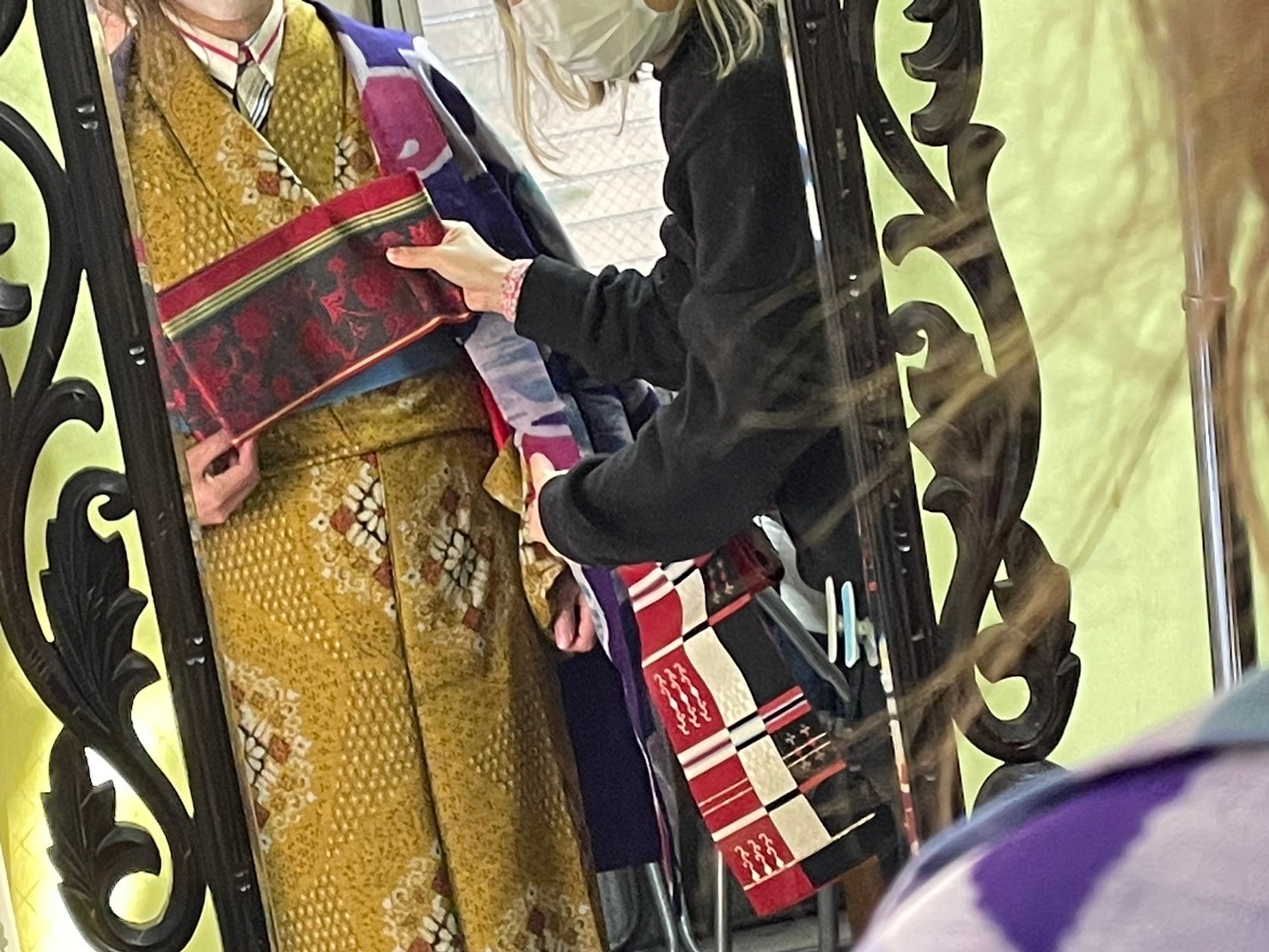 着付け中は黒子みたいな格好でした。私が着ちゃうと、その着物着て貰えなくなっちゃうから…