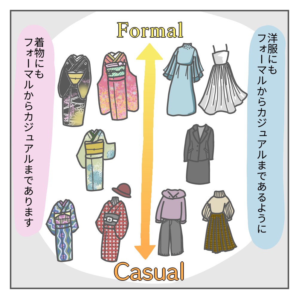 普段着と礼装の違いは、こちらもご参考に↓