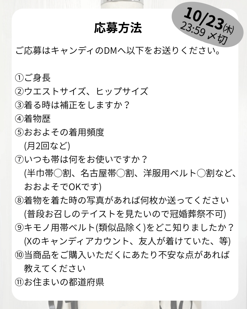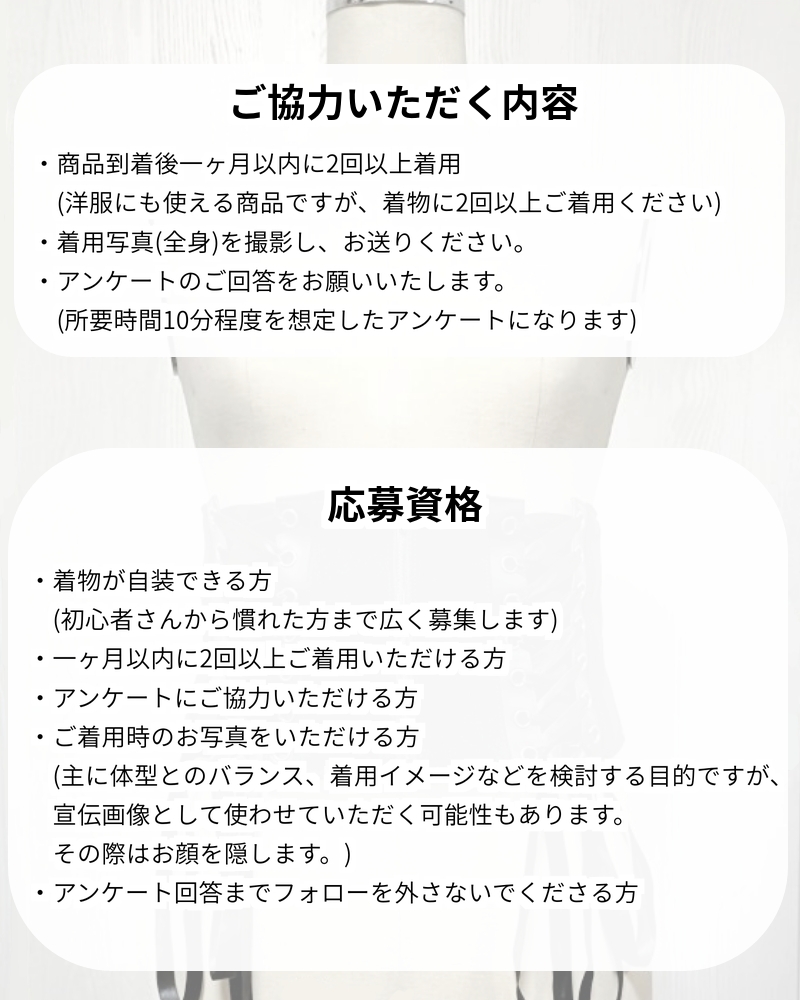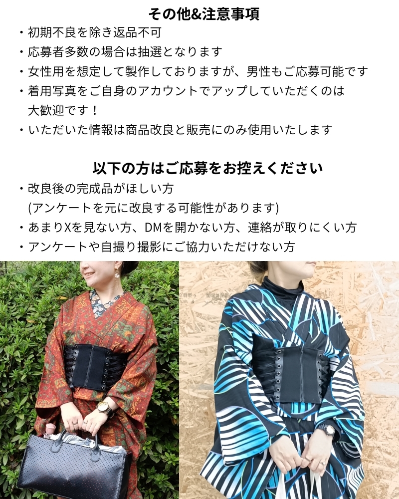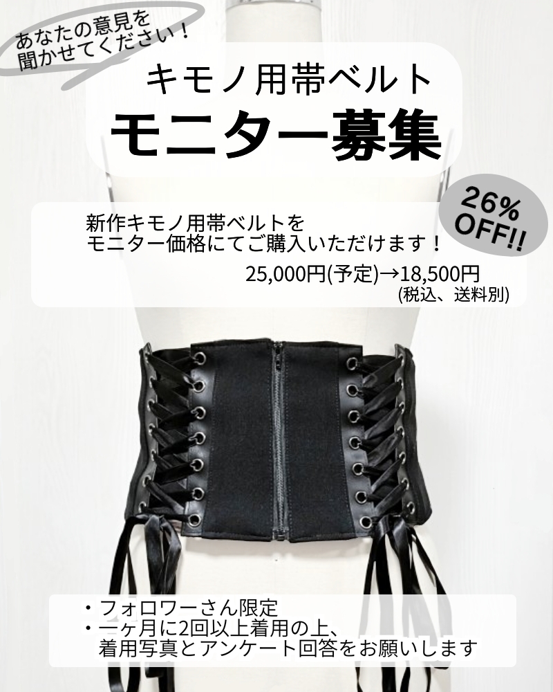人気のキモノ用帯ベルト、新作の発売前にモニターを募集します。