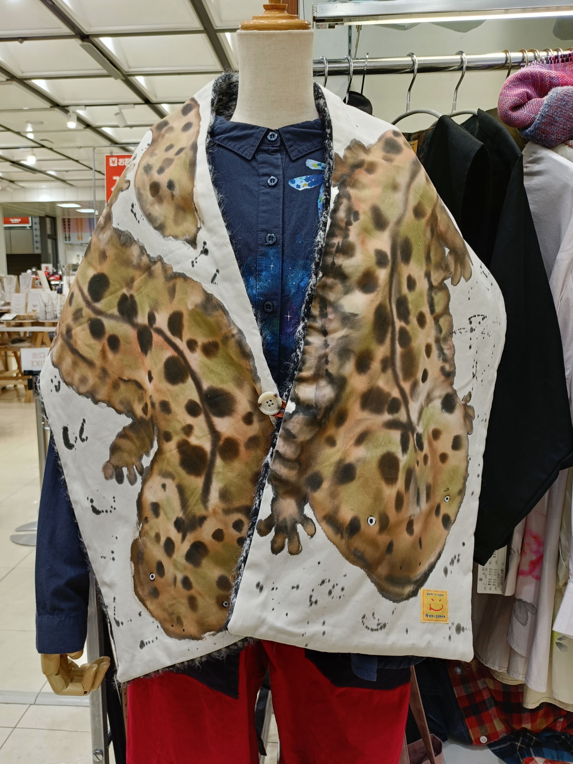 昔ながらの染料で、オオサンショウウオの柄を表現されてるそうです。