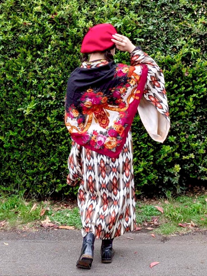 ストールも洋服の古着のもの。
