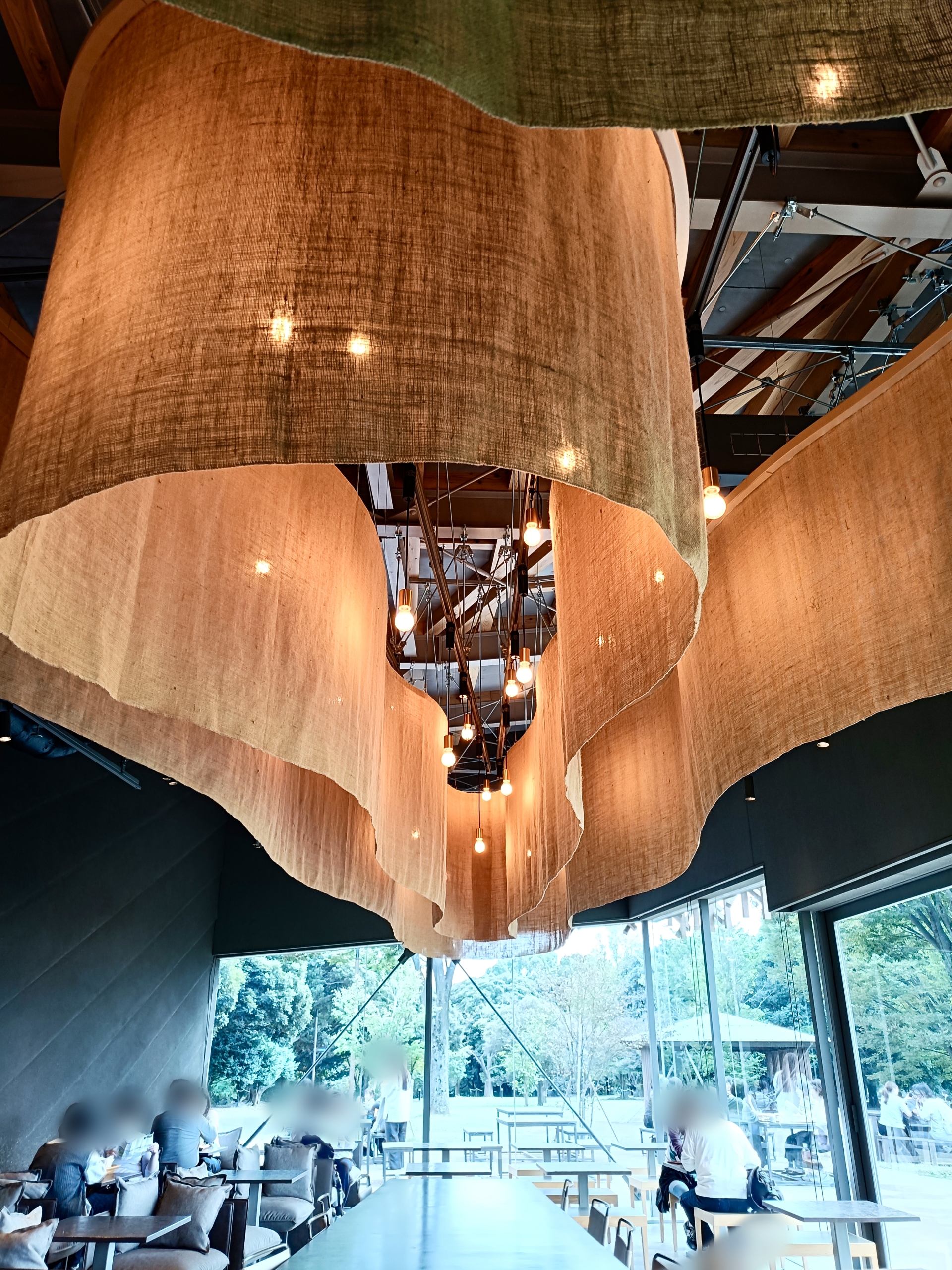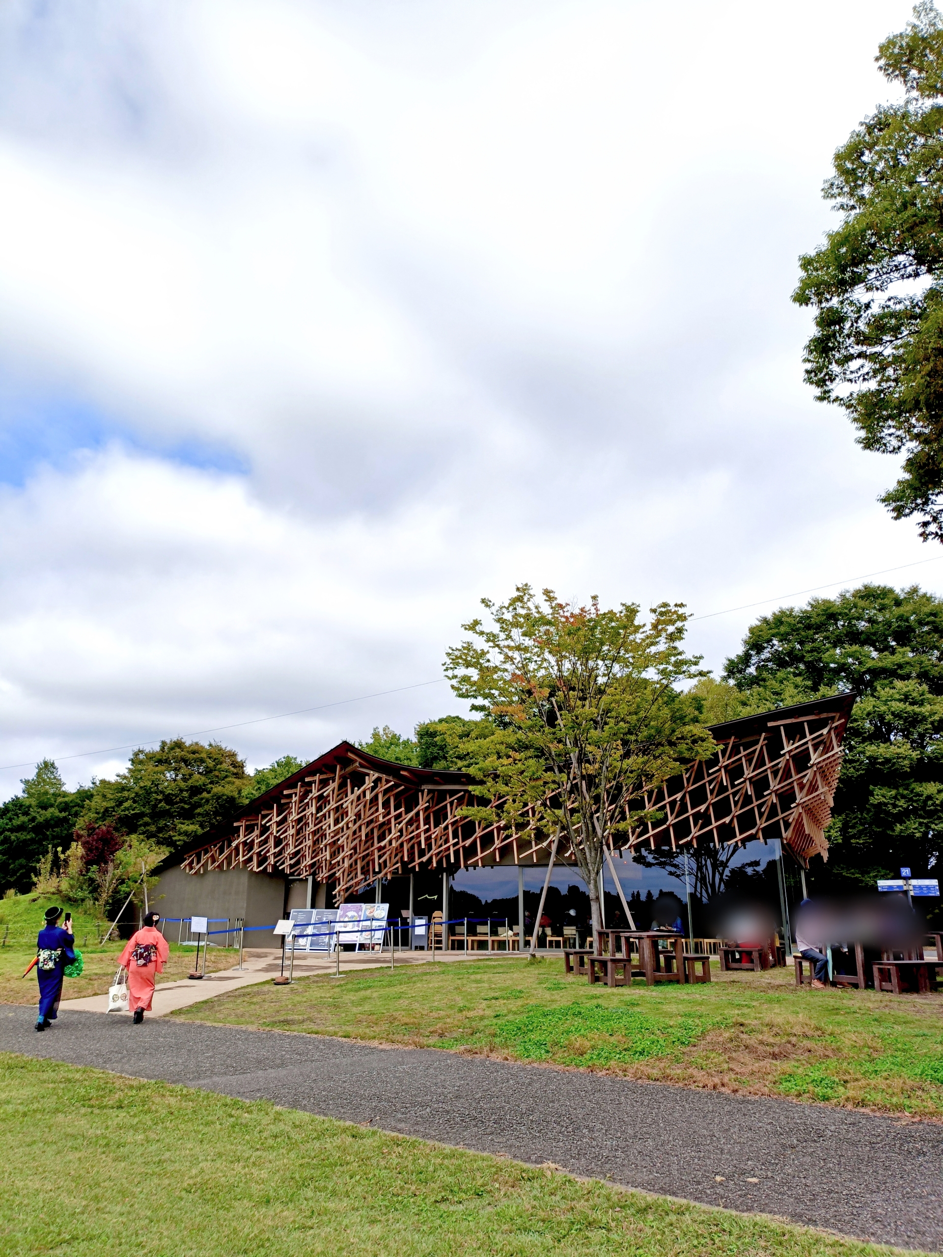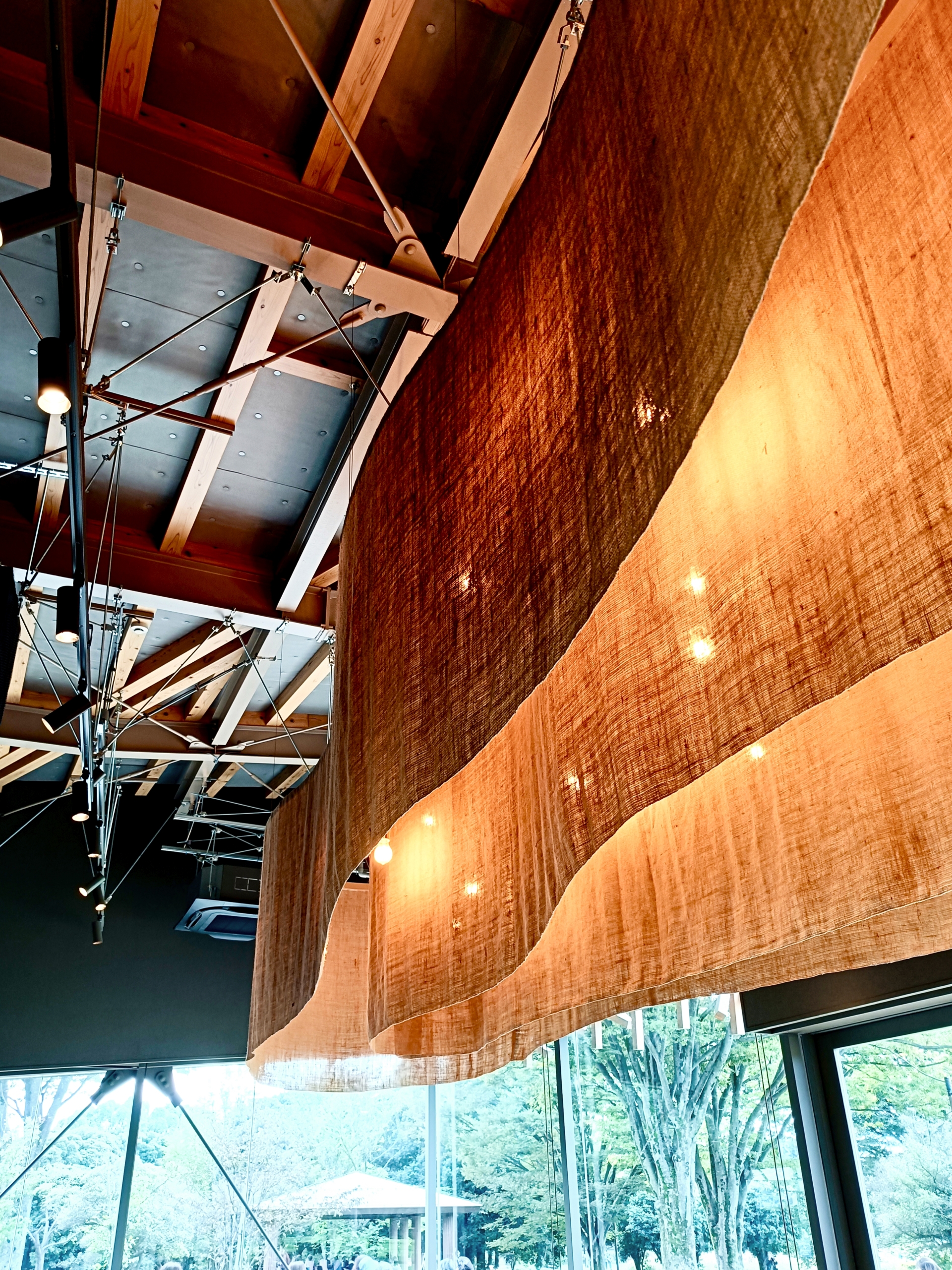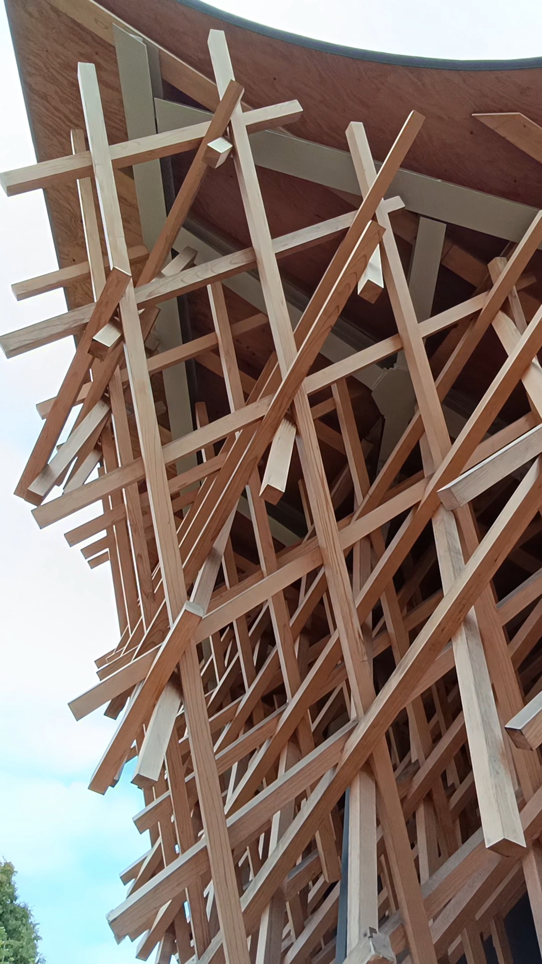 公園との調和を目指し、ケヤキをイメージした木組みだそうです。