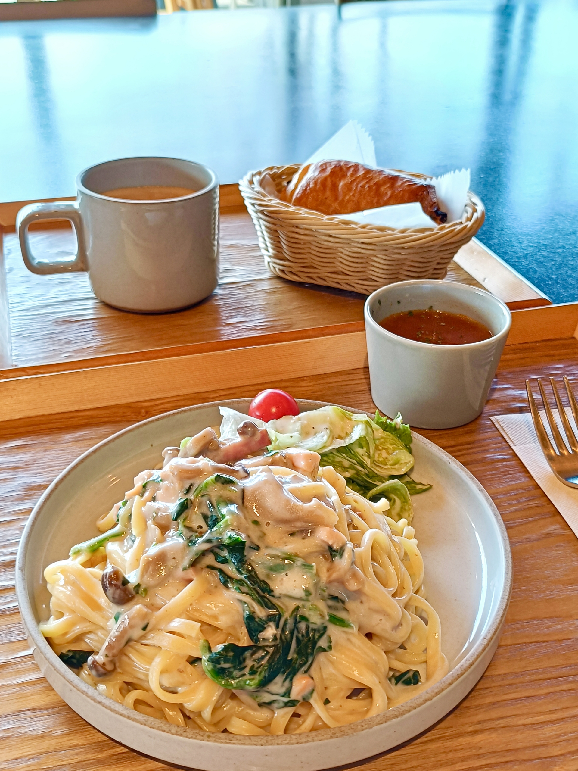 この時はほうれん草と鮭の濃厚ポルチーニクリームパスタ。